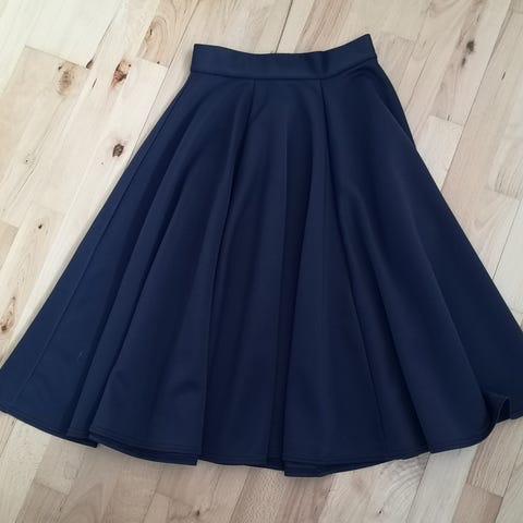 Closet rød nederdel i størrelse S. Nederdelen har en bred pasform med plisserede detaljer og en synlig lynlås bagpå. Materialet fremstår som fast og struktureret, egnet til kvinder.