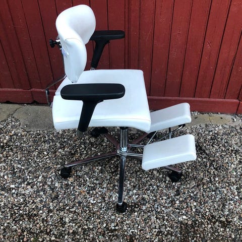 Som ny. Højde: 63-82 cm. Man sidder og "står" fantastisk. Super også for en svag ryg. Og så er den smuk - Stolen er også til salg Ergopartner for 7.000.