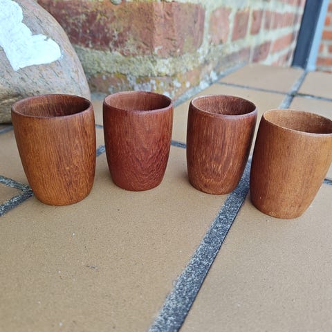 Andre samleobjekter, 6 stk æggebægre i teak (retro)