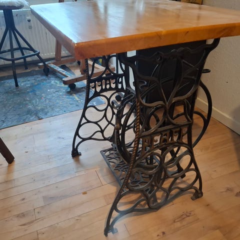 Sybord, PFAF, Flot sybord i træ med indlagt PFAFF symaskine med lille lampe