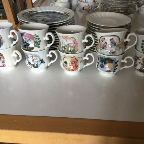 8 kopper samt 8 kagetallerkener
