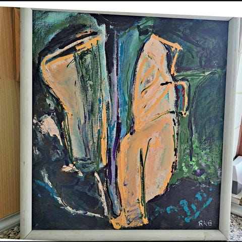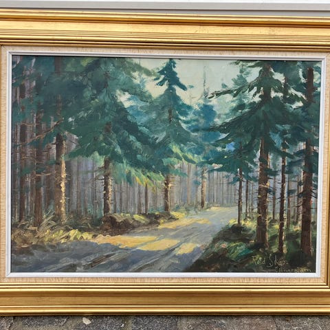 Olie på lærred indrammet i guldramme ( ramme med lidt brugsspor), fin stand, signeret, rammemål 72x62 cm.