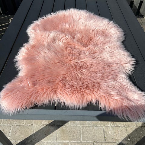 Lækkert "lammeskind" i smuk himmelblå farve. Kan bruges som hynde, deko eller tæppe m. m.