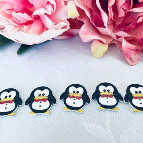Knapper, pingviner, 5 stk. træ. Prisen er for alle sammen, sælges kun samlet. Fast pris