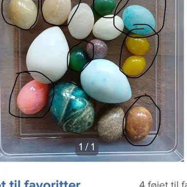 * 2 æg er muligvis dekoreret gipsæg, lidt brugsspor