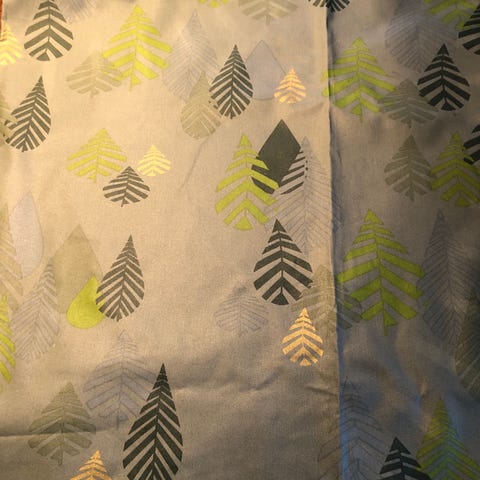 Stribet tekstilvoksdug i sand/hvid i bredden 1,40 m og længden 2,10 meter, er brugt få gange og er som ny.