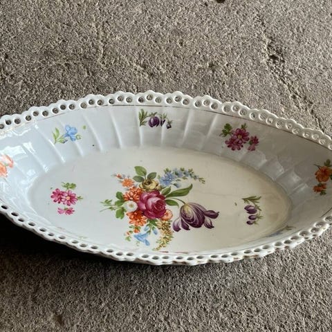 Håndmalet Porcelæn Skål - Blomst