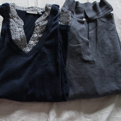 BLUSE FRA FRANSA ,LØS FOROVEN, MED ÅBENT LØST ÆRME ,BLIR SMAL FORNEDEN MED BINDEBÅND !! STR 42/ 44
