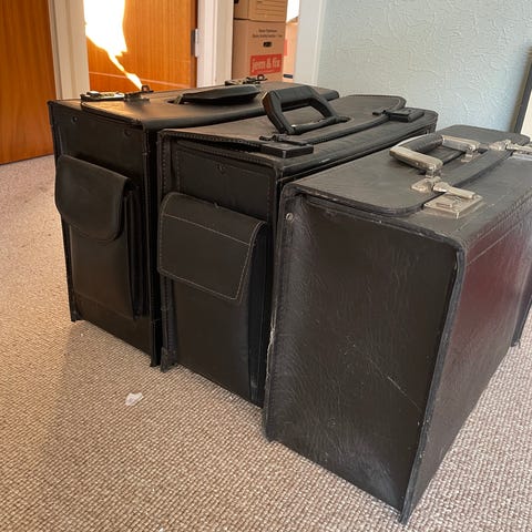 Mobiltaske, JET 2001, Herre taske med hang i mørk rød brun med 3 fag, i Leder, patina, men i god stand. JET 2001