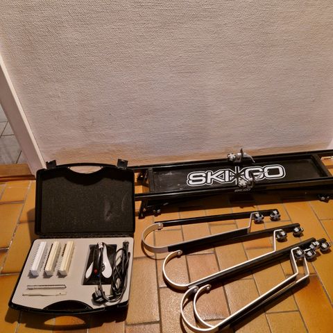 Fra svenske SkiGo smørestativ til langrendsski. Dette stativ er bygget til forberedelse, rengøring og voksning af langrendsski. Det kan let foldes væk og er hurtig at sætte sammen igen.