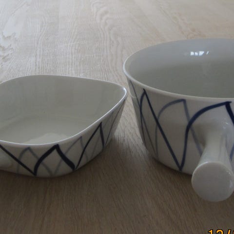 Porcelæn, Ildfast kasserolle med låg, Lyngby Porcelæns Fabrik, Retro serveringsservice fra det originale Danild nr. 50 Picnic frugt- og grøntsags-stel.
