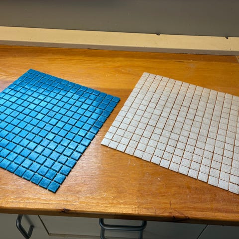 Mosaik, ca. 9 ark, Glasmosaik ark i forskellige beige og brunlige nuancer.