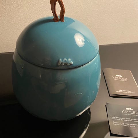 Har et minimalt hak i kant, ellers som ny.