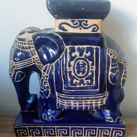 Stor porcelænselefant, som står på en porcelænssokkel. Den er stemplet Enzo Alberton. Højde ca 60 cm. Oplagt til en plante eller eventuelt en lampe.