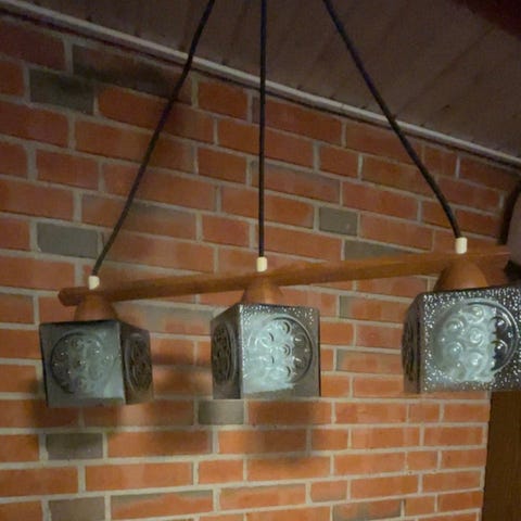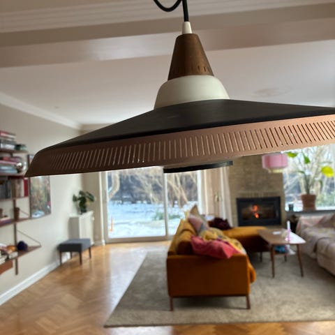Super fed retro lampe, den er ret gammel og det har sat dine spor, så lidt af malingen af slidt på nogle af kanterne.