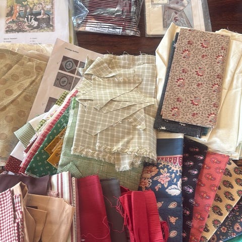Stof, Patchwork, Påbegyndt patchwork syet i hånden. Standen er helt i orden, blot ikke færdig syet langs kanterne..