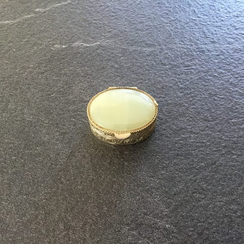 Gammel pille dåse guld med perlemor.