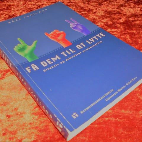Effektiv og målrettet præsentation: Om verdensbilledet og din personlige kommunikationsevne ; Om at organisere indholdet af et budskab i dit hoved ; Om din krops sprog og virkemidler ; Om attituder - dine egne og andres ; Om fremtoning, stil, image, farver og påklædning ;Om at bruge stemme og sprog ; Om at anvende visualisering, illustrationer og dokumentation ; Om at vælge og udnytte de fysiske rammer ; Om kommunikations- og manipulationsteknikker, 168 sider.