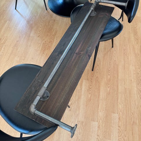2 sengeborde i Egetræ og med holdere / ophæng fra Rackbuddy (Johnny Hyldeophæng)
