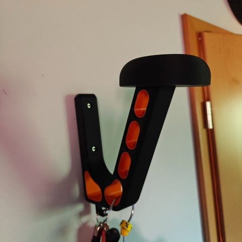NY hjelmholder fremstillet i laserskåret rustfrit stål, med krog til jakke eller læderdragt.