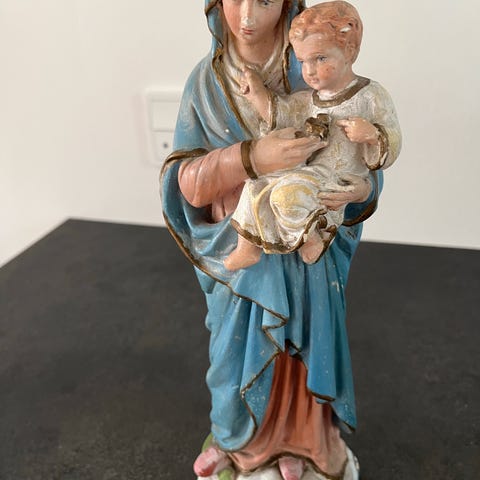 Madonna 19 cm, Fransk LANDSTIL, nips, patina, nyt og gammelt.