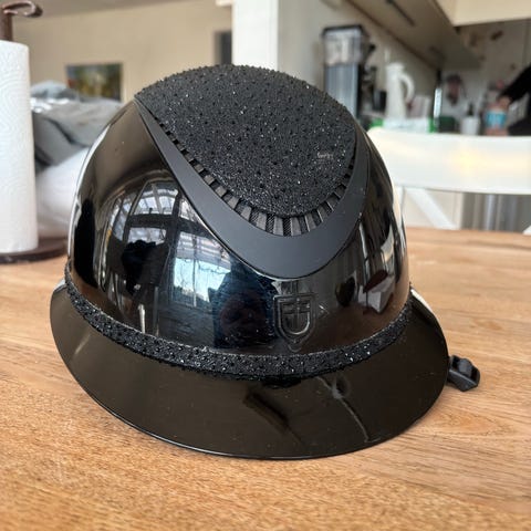 Ny ridehjelm fra BR model Omega Pt Glitter hjelm. Sort/ Rosegold. Str. 55-57cm. Sælges da butikken var lukket da vi ville returnere den.