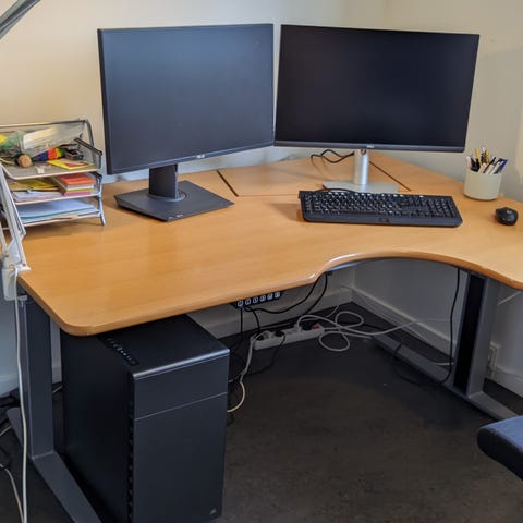 Skrivebordet har et stabilt stel, der let justeres til en arbejdshøjde mellem 68 og 118 cm. Den lydsvage motor løfter altid bordet 100% jævnt.
