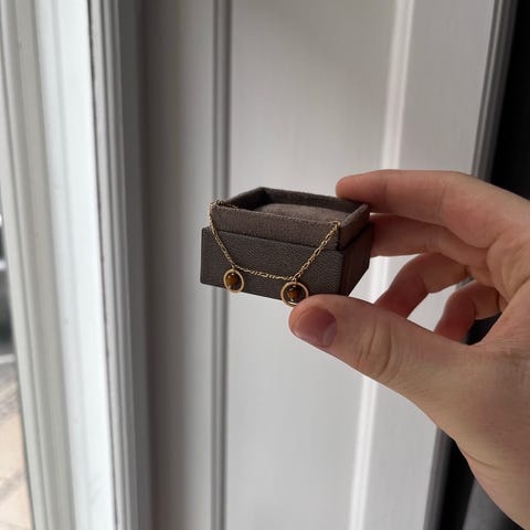 Meget fin oxyderet sølvkæde fra Dulong. Ca 80 cm lang.