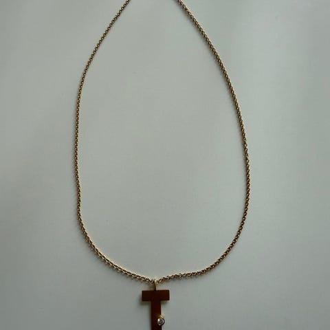 Den fulgte med et vedhæng, men jeg valgte en anden kæde og derfor har denne aldrig været brugt.