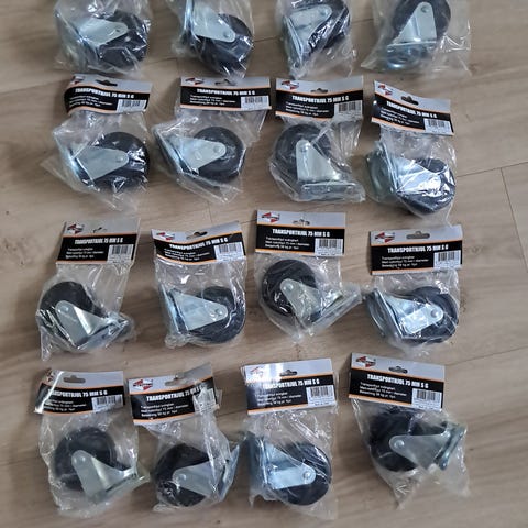 Transporthjul, Diverse transporthjul med kuglelejer, se billeder. Hvis interesseret skriv på annoncen og evt hvad Billed. Pris fra 50 kr pr STK.