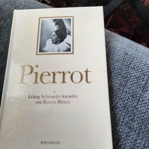 Pierrot-Erling Schroeder fortæller om Karen Blixen, Erling Schroeder, genre: biografi, Hardback udgave fra 1984 i flot stand.