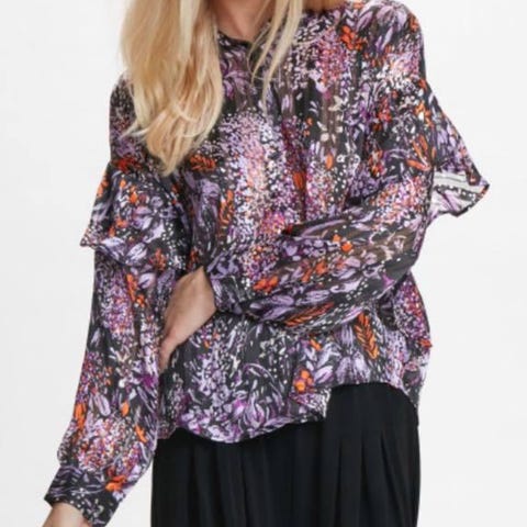 Super fin mørkeblå bluse med høj hals, knapper og feminine detaljer. Ikke brugt mere end 12-14 gange. God stand