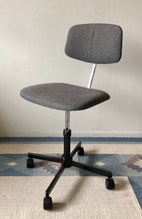 Stolen er manuel, uden hydraulik men kan justeres i rygen og højden fra 43 cm til 53 cm