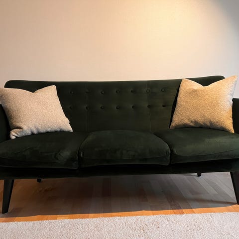 Sofa, velour, 3 pers. , Sofacompany, Sælger denne smukke petroleumsblå sofa med puf. Den er speciel designet