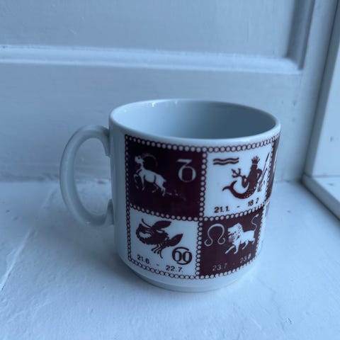 1 stk Med finurlig tekst. Behagelig tynd hank og drikkekant.
