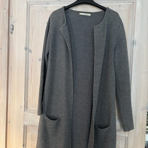 Rigtig fin striktrøje/ cardigan fra Linnebjerg i str.M, i farven vissengrøn i 50% merinould og 50% akryl med 2 lommer. Striktrøjen er brugt 2-3 gange,