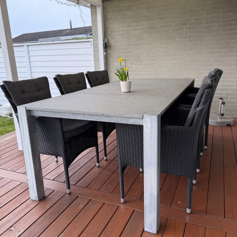 Super flot Kvalitets havemøbler, bestående af kraftig galvaniseret bord m/ granit plader og 6 stk. stole m/ hynder.