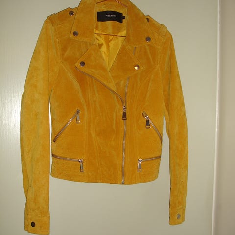 Jakken er brugt minimalt og fremstår derfor i rigtig fin stand! Jakken er lavet i lækker skind og har ribkanter ved både hals, ærme og talje.