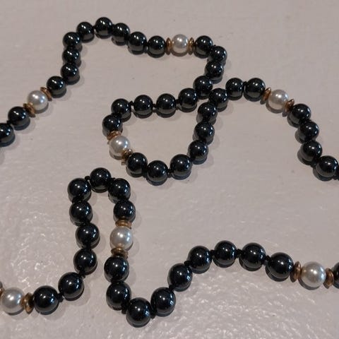 Fin vintage halskæde med perler af blodsten/hæmatit. Ingen synlige brugsspor. Længde 40cm