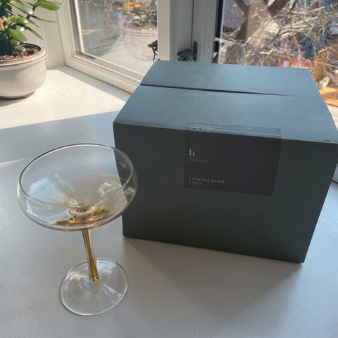 Mundblæst vandglas med en flot ravfarve som toner ud i klart glas i toppen.