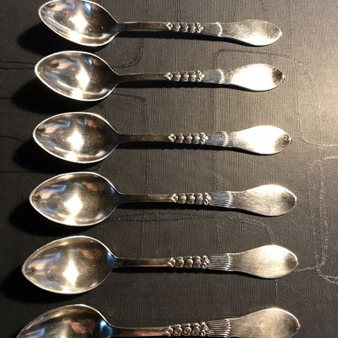 Antikke skeer, Sølv, 105 år gl., 5 sølvteskeer med mønster indgraveret.