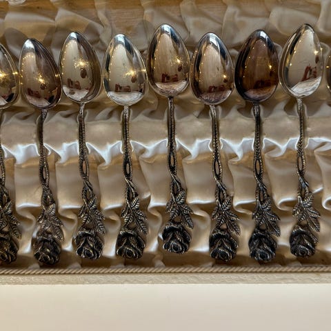 6 antikke sølv teskeer fra A. Meilsøe.