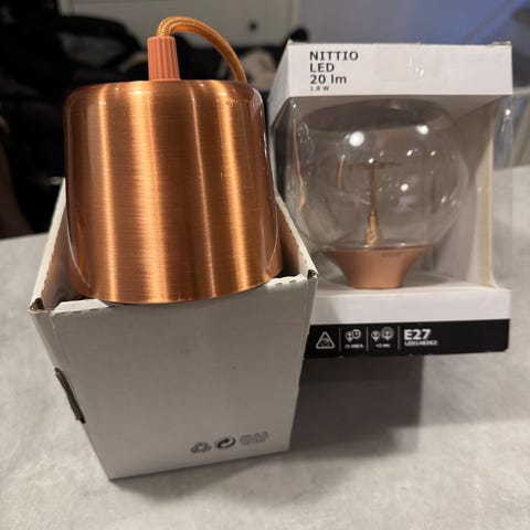 Sælger ubrugt Ollsta-lampe fra Ikea. Sælges med sort ledning (1,5 m), lampefatning og ledningsskjuler. 50 kroner for det hele (lampen koster 69 i Ikea uden tilbehør).