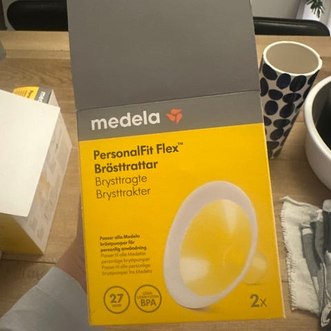 Jeg sælger hermed tragte til medela brystpumpei str. 27. Der er 2 tragte I æsken.