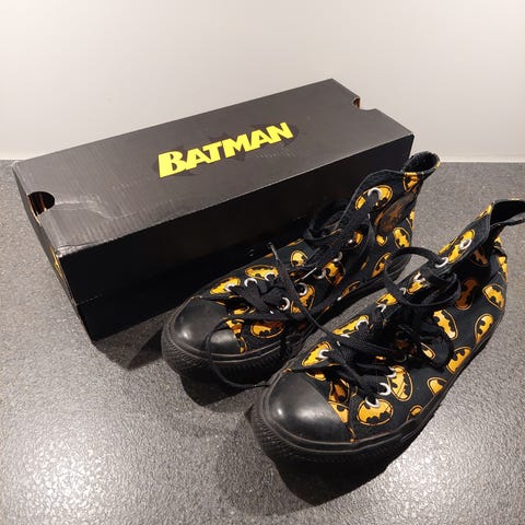 Superfede vintage agtige Converse Batman sneakers, se de fede detaljer på billederne, samt den gennemsigtige bund.