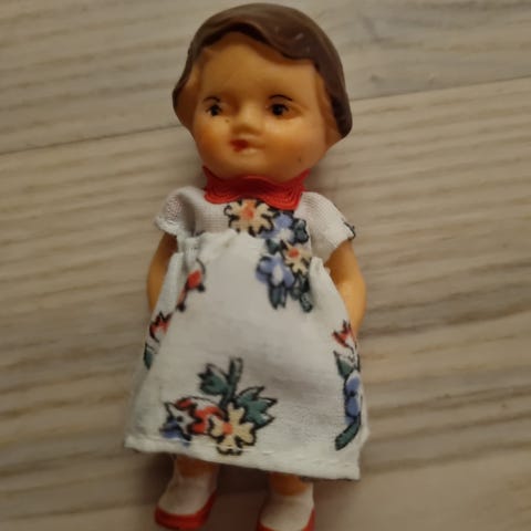 Andet, Arias dukke ca 30 cm, en ca 30 cm lang pige dukke med flot hår ældre kan stadig grine og sige mamma og pappa når hun trykkes på maven . i fin stand og meget livagtig med lyseblå livagtige øjne . hendes tilehør er væk men hun kan finde en hjemmestrikket kjole at tage med sig . oprindelig dyr . sendes for købers regning ller hentes her