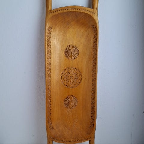 Særdeles flot antik/vintage håndskåret egetræs Slagterfad - Pølsefad -Tapasfad - Frugtfad mm