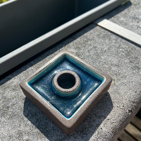 Knabstrup væghængt retro stage, Der er her tale om en rigtig lækker retro Knabstrup væghængt stage i en flot blålig glasur.