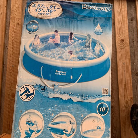 Indeholder: bassin, filterpumpe, stige, overdækning, underlag og reparations lap.