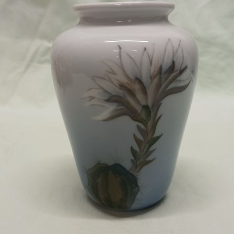 Vase med blomster 2639 45-5 fra Royal Copenhagen. Måler 10,5 cm i bunden. Lidt sjovt at mærket fra Bjørns Isenkram Holbæk sidder på endnu. Kan sendes på købers regning